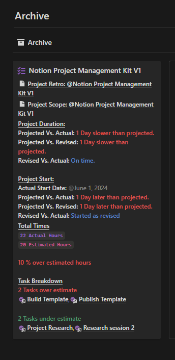 You can feel free to try any of these formulas in your own system. They're also all available in my Project Management Kit 2.1.1, and it utilises all these properties and formulas in one cohesive project management system.